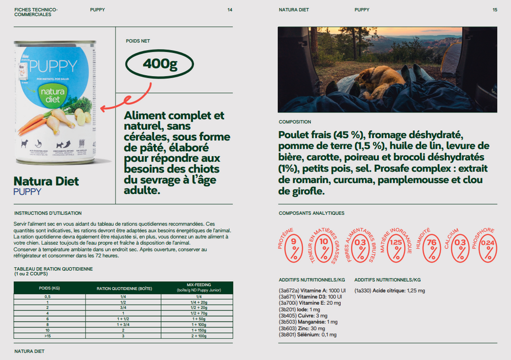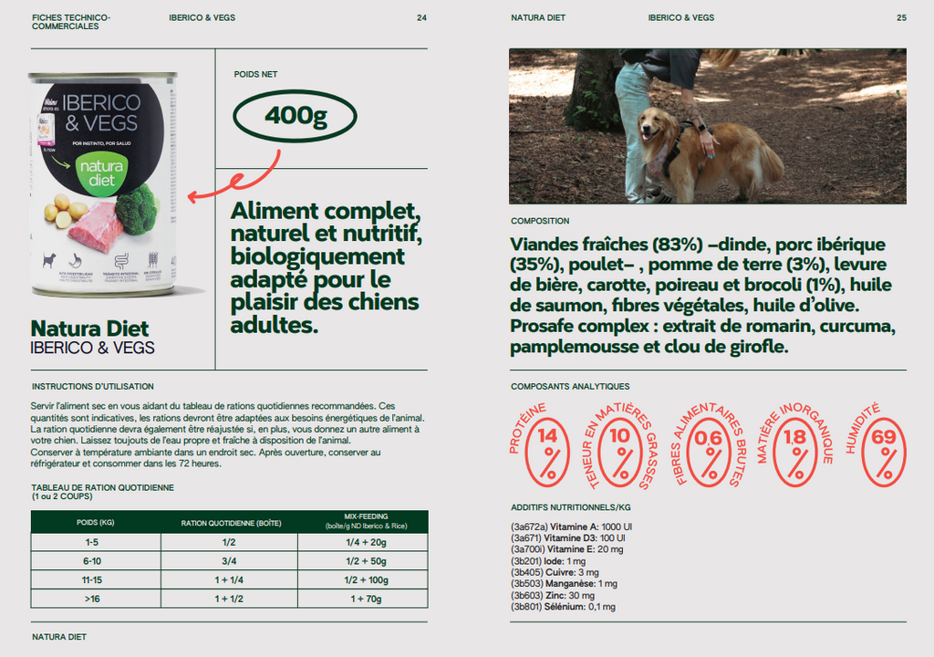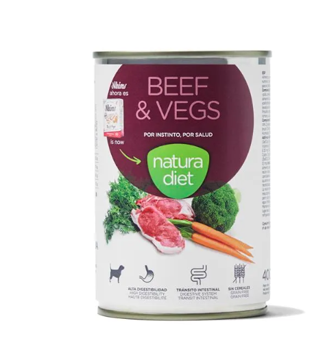 Natura Diet (400 g) ist ein komplettes und natürliches Essen, das selbst die anspruchsvollsten Hunde begeistert. Köstliche Rezepte mit frischem Fleisch, Fisch und Gemüse (3%).